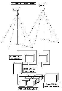 We recommend this package for homeowners and small businesses that want protection from extended power outages, but don't need a system as large as the 7.5 kW Home.Sure system. This capability requires the addition of batteries and a sophisticated inverter. The Home.Sure system keeps the batteries charged up and during an outage home power is supplied by both the batteries and the wind turbines. In regular (non-outage) operation any excess energy, once the batteries are charged, is sold to the utility company or "stored" by utilities offering net metering. This package uses 60 ft towers because this is the shortest tower height for the XL.1 turbine. The taller the tower the better and towers shorter than 60 ft. should only be used in special circumstances. The Tubular Tilt-up towers can be installed without concrete and they tilt-up after all the assembly work is done on the ground. The batteries are Trojan T-105's, a workhorse of the home power industry. A total of eight individual batteries are connected in two parallel strings of four batteries in series (24 VDC nominal). This battery bank will support essential loads (lights, radio, TV, refrigerator, freezer, water pump, and blowers) for 4 - 12 hours without wind energy input. The OutBack GTFX2524 sine-wave inverter provides 2.5 kW at 120 VAC (or 230 VAC, 50 Hz at 2.2 kW) and has enough surge capacity to start motors up to ~ 1 Hp. A back-up engine generator can be easily added. In addition to the equipment costs given below, a complete installation will typically include the following costs: shipping, sales tax, permit costs, foundation and anchoring, wire run, turbine and tower erection, battery racks or vault, electrical hook-up, and inspection fees. Some homeowners also incorporate a back-up gas, propane, or diesel generator into the system for maximum protection. Your dealer or Bergey WindPower can assist you in budgeting these additional costs. For budgeting purposes, these costs typically range from $3,000 (customer installed, no sales tax, etc) to $9,000 (Certified Dealer, sales tax, etc).